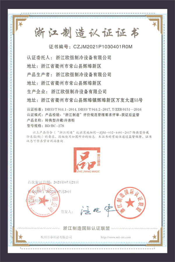 ZHEJIANG OUHENG REFRIGERATION EQUIPMENT CO., LTD. wurde gegründet